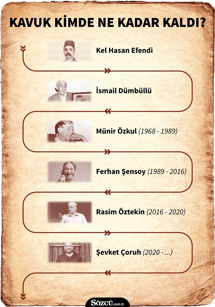 Geleneksel Türk tiyatrosunun en önemli simgelerinden olan kavuk, Harbiye Cemil Topuzlu Açık Hava Tiyatrosu'nda düzenlenen törenle 20 Eylül’de Rasim Öztekin’den Şevket Çoruh’a devredildi. Törende konuşma yapan Rasim Öztekin, “Kavuk, bir usta-çırak ilişkisi. Bir liyakat ilişkisidir. Bugün Türkiye’de liyakat olayı tamamen unutuldu” dedi. Kavuğu teslim alan Çoruh ise pandemi döneminde tiyatro emekçilerinin durumuna dikkat çekerek, “Türk tiyatrosu çok zor bir dönem yaşarken mahalle yanarken saçımızı mı tarıyoruz diye bir düşünce geldi aklıma… Bu kavuğu bugünkü zor şartlarda, Anadolu’da perde açmaya çalışan, alternatif sahnelerden apartman dairelerine kadar yüreği tiyatroyla dolu tüm tiyatro emekçileri adına kabul ediyorum” ifadelerini kullandı.