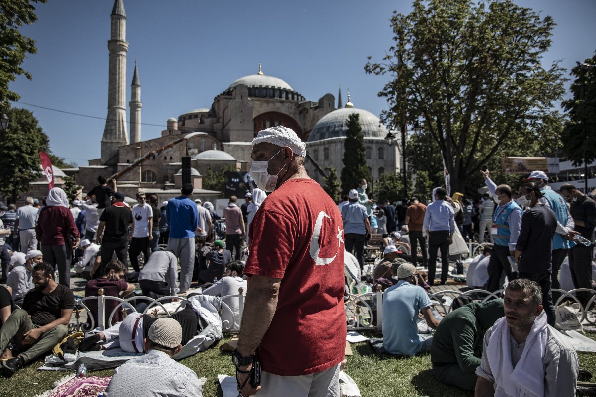 TEMMUZ AYASOFYA İBADETE AÇILDI■ 24 Temmuz'da Ayasofya, 86 yıl aradan sonra binlerce kişinin katıldığı törenle ibadete açıldı. Diyanet İşleri Başkanı Prof. Dr. Ali Erbaş, Cumhurbaşkanı Erdoğan'ın da katılımıyla kılınan Cuma namazında kılıçla minbere çıkıp ilk hutbeyi okudu. Salgın döneminde toplanan kalabalıklar tartışmalara yol açtı.