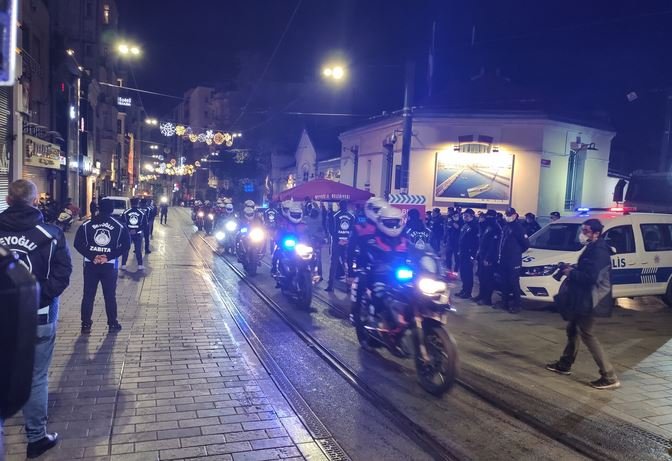 Cumhurbaşkanı Erdoğan, kabine toplantısının ardından yaptığı açıklamayla 31 Aralık Perşembe günü saat 21.00'dan 4 Ocak Pazartesi sabah saat 05.00'e kadar sokağa çıkma kısıtlaması uygulanacağını duyurmuştu.Yılbaşını da kapsayan sokağa çıkma kısıtlaması bu akşam saat 21.00 itibariyle başladı. Yasağın başlamasıyla birlikte İstanbul’da sokak ve caddeler yavaş yavaş boşalmaya başladı.Akşam saatlerinde yüzde 60 seviyelerine yükselen trafik yoğunluğu ise kısıtlamanın başladığı ilk dakikalardan itibaren yüzde 6 seviyelerine geriledi.İstanbul İl Emniyet Müdürlüğü ekipleri ve Beyoğlu Belediyesi Zabıta Müdürlüğü ekipleri yılbaşı önlemleri kapsamında Taksim ve İstiklal Caddesi çevresinde önlemlerini arttırdı.