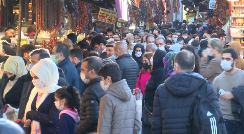 “AŞAĞI YUKARI 6 AYDIR EMİNÖNÜ’NE GELMİYORDUM”Yılbaşı akşamı öncesi et almak için bir dükkanda sıra bekleyen Yavuz Aydın, “Alışverişimizi yapacağız, en kısa zamanda evimize geçeceğiz. Kısıtlamalara da uyum sağlamaya çalışacağız acil bir şey olmadığı sürece. Yeni başladım alışverişe kahvaltılık, et, kuruyemiş falan alacağım tabii ki. Aşağı yukarı 6 aydır gelmiyordum Eminönü’ne. Herkese sağlıklı mutlu bir yıl dilerim” şeklinde konuştu.“ESKİ YILBAŞLARI, BAYRAMLAR BİTTİ”59 yıldır Eminönü’nde bir baharat dükkanı işleten Gülşan Acar, “Eski yılbaşları, bayramlar bitti. 3 gün tatil diyor millet, bu kalabalık ondan. Yoksa böyle olmaz. Eskiden kahveci kuyruk, şekerci kuyruk, kuruyemişçi kuyruk olurdu Bunların hepsi bitti. İnşallah güzel günler bizi bekliyor. Yarından sonra kapalıyız diye bu kalabalık. Yoksa burası 1, 2, 3 kişi” ifadelerini kullandı.