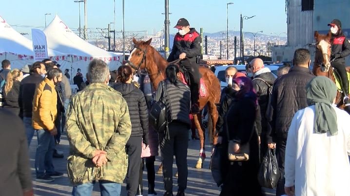 Kimi vatandaş yılbaşı öncesi gıda ve süs alışverişini hızlıca yapıp evine döndüğünü ifade ederken, kimi ise bugünkü yazdan kalma güneşli günün tadını çıkarttığını söyledi. Pandeminin başından bu yana en yoğun günlerinden birini yaşayan Eminönü’nde, özellikle kuruyemiş ve kahvaltılık satan dükkanların tezgahlarında alışveriş telaşı vardı. Öte yandan, sosyal mesafe kuralına uymanın mümkün olmadığı da dikkat çekti.“ALIŞVERİŞİ BİTİRDİK, HEMEN EVİMİZE DÖNÜYORUZ”Annesi ile birlikte alışverişini yapan Neslihan Yener, “Alışverişe geldik yılbaşı için. Ayrıca ben iş yapıyorum, mal almaya geldim. Uğramışken de yeni yıl için bir şeyler alalım dedik. Genellikle kahvaltılık, kuruyemiş öyle şeyler. 4 gün boyunca çıkmayı düşünmüyoruz çünkü. Çok kalabalık. Çıkmak zorundayız, çıkmadan da olmuyor” dedi.Annesi Güler Yener ise, “İlk defa geldim ben, şaşırdım. Şoke oldum vallahi. 32 senedir ilk kez geldim, çok kalabalık. Kızıma yardımcı olayım diye buradayım yoksa hayatta çıkmam. İkide birde elimi dezenfekte ediyorum. İşimizi bitirdik, hemen dönüyoruz. Hiç oyalanmadan, bir şey yiyip içmeden” diye konuştu.