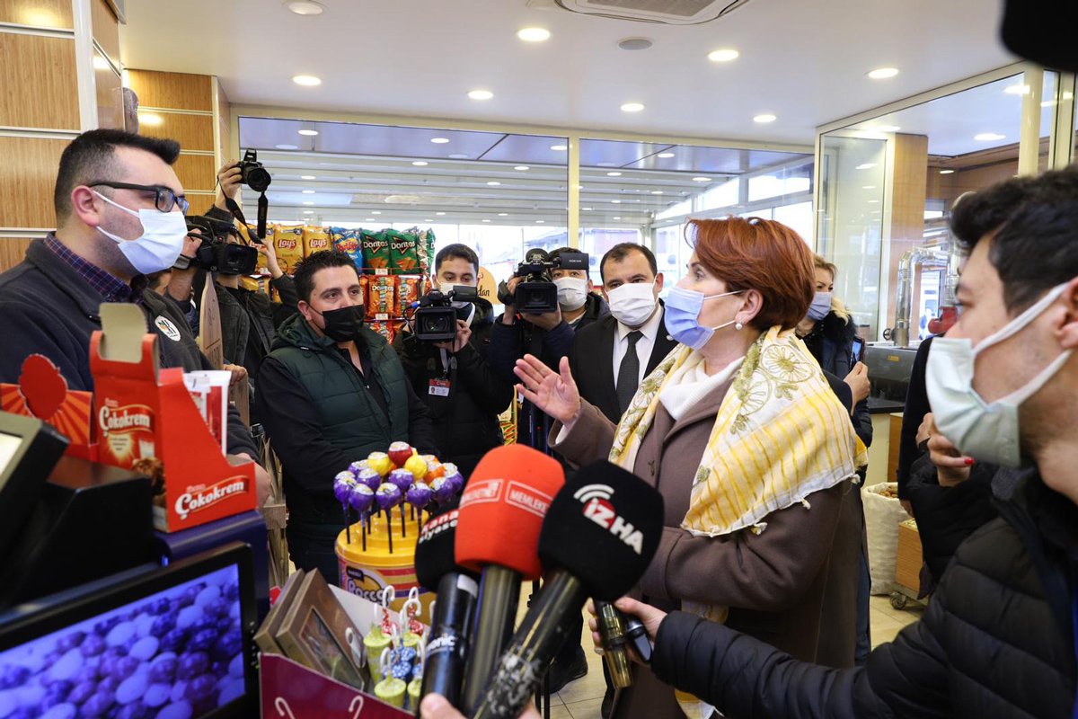 İYİ Parti Genel Başkanı Meral Akşener, Ankara'nın Elmadağ ve Gölbaşı İlçeleri'nde vatandaşlarla bir araya geldi. Akşener dükkanları gezerek esnafın derdini dinledi. Bir dokundu bin ah işitti. Ayakkabı satıcısı bir esnaf Akşener'e “Abla işler çok kötü, inan sabahtan bu yana sadece 50 lira kazanabildim, istersen kasayı göstereyim. Artık dayanacak güç kalmadı. Geçinemiyoruz. Siftahsız dükkan kapatıyoruz. Kira 5 bin lira, bize verilen yardım 750 lira. Gel de geçin. Batma noktasına geldik. Daha çok destek istiyoruz” sözleriyle dert yandı. Bir kadın da, “Eşimin kahvesi vardı, kapatmak zorunda kaldık. Evim kira. İki çocuk var. ‘Bay Kemal, Bay Kemal' diye uğraşacaklarına milletin sorunlarıyla ilgilensinler” dedi.