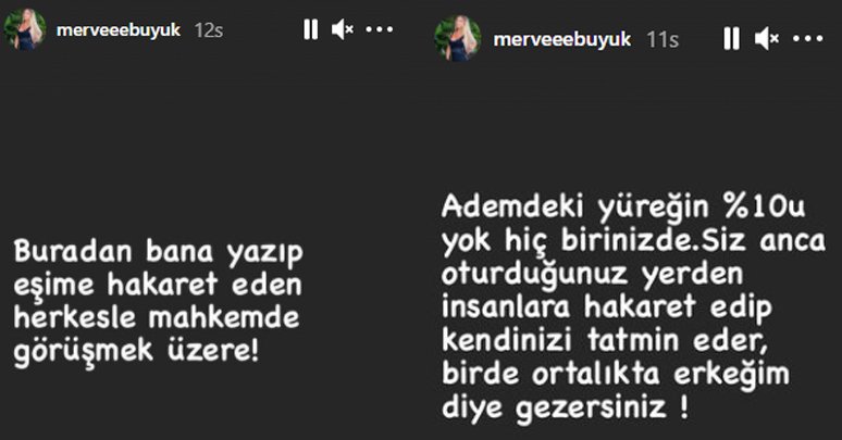 Bu açıklamaların ardından Adem Büyük’ün eşi Merve Büyük Instagram hesabından bir paylaşım yaparak kendisine hakaret dolu mesaj atanlarla mahkemede görüşeceğini söyledi. Merve Büyük’ün paylaştığı mesajda “Buradan bana yazıp eşime hakaret eden herkesle mahkemede görüşmek üzere! Adem’deki yüreğin yüzde 10’u yok hiç birinizde. Siz anca oturduğunuz yerden insanlara hakaret edip kendinizi tatmin eder, bir de ortalıkta erkeğim diye gezersiniz” notu yer aldı.