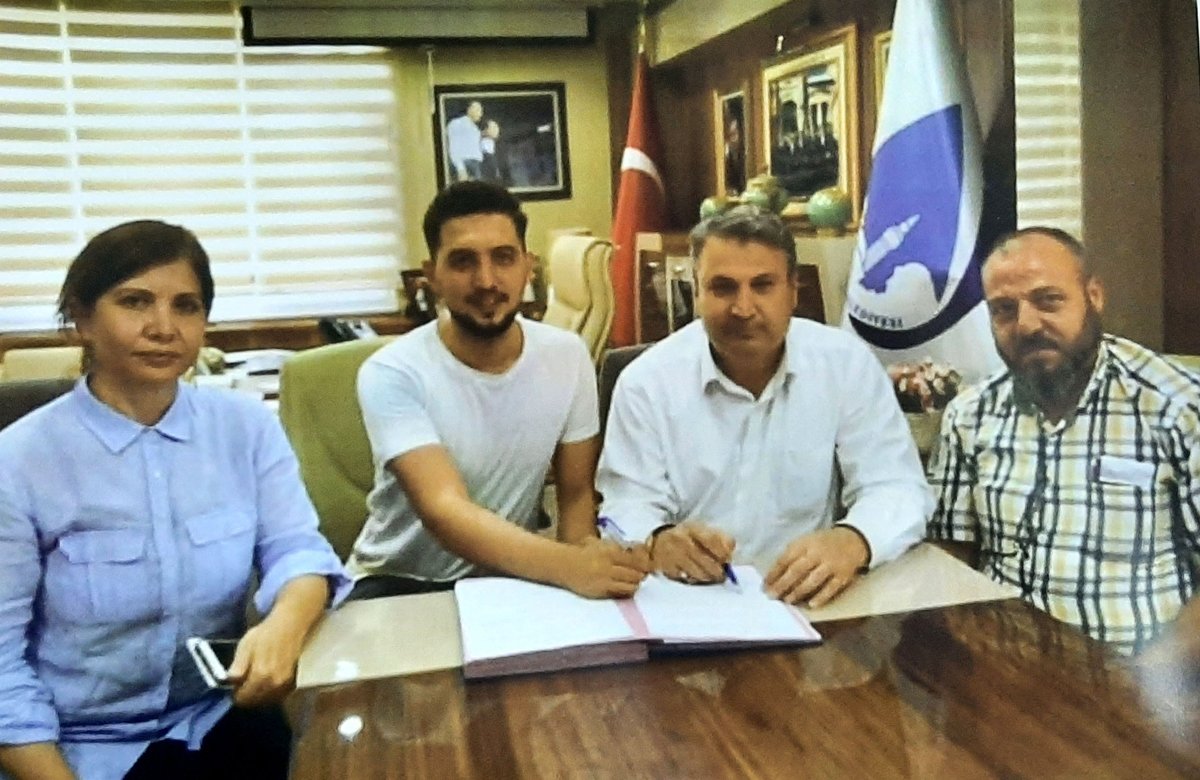 Yunusemre Belediye Meydan Camii Yaptırma ve Yaşatma Derneği Başkanı Mücahit Demirtaş(Soldan İkinci), camiyi yapan babası Numan Demirtaş(Sağ Başta) ve AKP'li Yunusemre Belediye Başkanı Mehmet Çerçi(Sağdan İkinci) ile cami yapımı için protokol imzaladı.