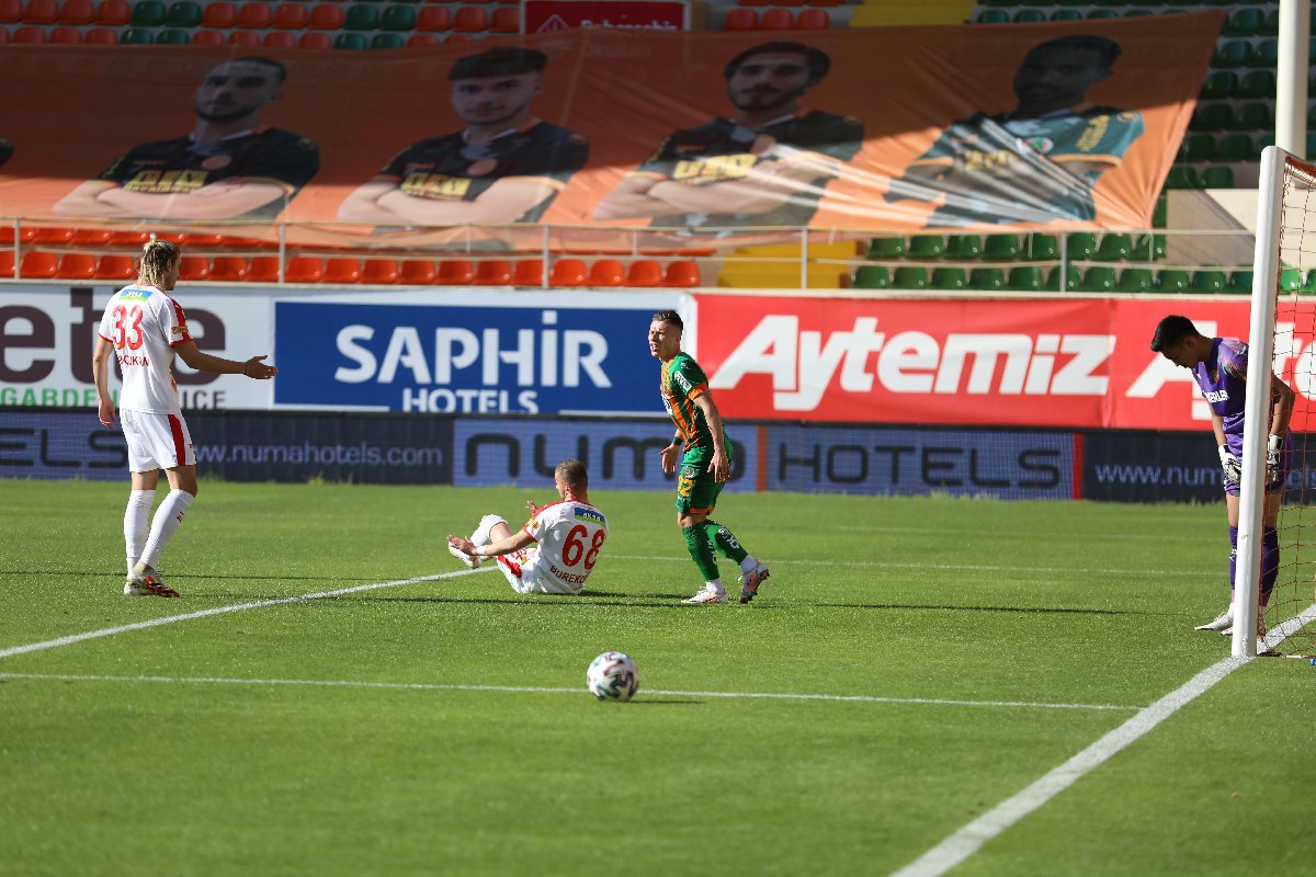 Alanyaspor ile Göztepe arasında Alanya'da oynanan karşılaşma berabere sonuçlandı. Alanyaspor'un ligdeki galibiyet hasreti dört maça çıktı. Süper Lig’in 28. haftasında Aytemiz Alanyaspor, Bahçeşehir Okulları Stadyumu’nda Göztepe’yi konuk etti. İlk yarısı 1-0 Göztepe’nin üstünlüğü ile sona eren karşılaşma, 1-1 berabere sona erdi. Ligdeki galibiyet hasreti dört maça çıkan Alanyaspor’un golü Tzavelas’dan gelirken, Göztepe’nin golünü Fatih Aksoy kendi kalesine attı.Ligde üç maçlık bir galibiyet serisi yakalayan Göztepe ile üç maçtır galip gelemeyen Alanyaspor, Alanya’da karşı karşıya geldi. İlk yarının son dakikalarında Göztepe, rakibi karşısında öne geçti. 44. dakikada Fatih Aksoy’un kendi kalesine attığı gol, konuk ekibin soyunma odasına 1-0 önde girmesini sağladı.İkinci yarıya hızlı başlayan Alanyaspor, 54. dakikada Tzavelas ile eşitliği yakaladı. Kalan dakikalarda iki takım da gol atma becerisi gösteremeyince mücadele 1-1 sona erdi. Böylece Alanyaspor’un ligdeki galibiyet hasreti dört maça çıkarken, Göztepe yenilmezlik serisini dört maça taşıdı.Alanyaspor, bu beraberlikle puanını 43’e, Göztepe ise 36’ya yükseltti.Stat: Bahçeşehir OkullarıHakemler: Turgay Kaan Numanoğlu, Erdem Bayık, Yusuf BozdoğanAlanyaspor: Marafona, Juanfran, Fatih Aksoy, Francois Moubandje, Giorgos Tzavellas, Manolis Siopis, Davidson (Efecan Karaca dk. 75), Damian Kadzior, Berkan Kutlu, Ceyhun Gülselam, Adam Bareiro (Mustafa Pektemek dk. 82)Yedekler: Serkan Kırıntılı, Alpay Çelebi, Hasan Hüseyin Acar, Umut Güneş, Efkan Bekiroğlu, Tayfur BingölTeknik Sorumlu: Semih TokatlıGöztepe: İrfan Can Eğribayat, Alpaslan Öztürk, Murat Paluli, Atınç Nukan, Dzenan Burekovic, Fousseni Diabate (Marko Mihojevic dk. 90+1), Cherif Ndiaye, Obinna Nwobodo (Cristian Titi dk. 90+6), Halil Akbunar (Lamine Gassama dk. 90+6), Soner Aydoğdu, Brown Ideye (Adis Jahovic dk. 46)Yedekler: Balazs Megyeri, Kerim Alıcı, Peter Zulj, Anderson Esiti, Kubilay Sönmez, Stefano NapoleoniTeknik Direktör: Ünal KaramanGoller: Fatih (dk. 44 k.k.) (Göztepe), Giorgos Tzavellas (dk. 54) (Alanyaspor)Sarı kartlar: Brown Ideye, Adis Jahovic (Göztepe), Ceyhun Gülselam (Alanyaspor)