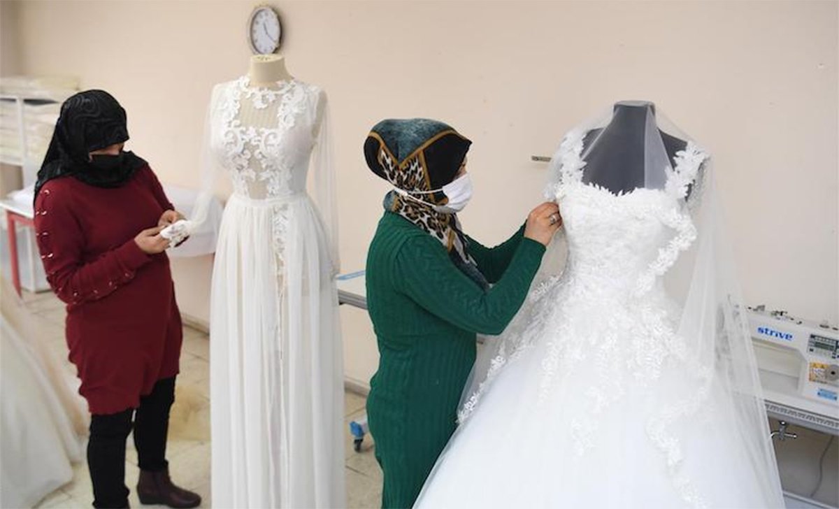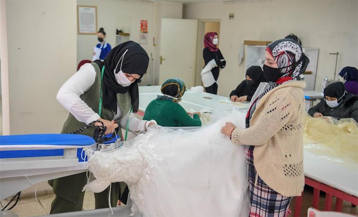 BU YIL KURSLARDAN 60 KADIN YARARLANACAK2020 yılında 20 mülteci kadının aldığı kurs tamamlanırken, bu yıl ise bu kurslardan haziran ayına kadar 60 mülteci kadın daha yararlanacak. Mülteci kadınlar kurs sonrası kuracakları kooperatif aracılığıyla diktikleri gelinlikleri satarak ekonomilerine katkı sağlayacaklar.“PROJE SÜRDÜREBİLİR OLACAK”“Mültecileri Güçlendirme Projesi” Asistanı Seren Zeynep Öztepe, Birleşmiş Milletler Yüksek Komiserliği ile birlikte yürüttükleri çalışmanın temel amacının kadınları üretime teşvik etmek ve meslek kazandırmak olduğunu belirterek, şu bilgileri verdi:“Kurslarımız haziran ayına kadar devam edecek. 2021 yılında devam eden pandemi süreci nedeniyle etap etap bu kurslardan 60 mülteci kadın yararlanacak. Kursumuz 6 hafta sürüyor. Kurslarımız bittiğinde de 7 mülteci ve 7 Türk kadın bir araya gelerek bir kooperatif kuracak. Bu kooperatif bir yandan bu projenin sürdürebilir olmasını sağlarken bir yandan da kadınların ev ekonomileri için gelir elde etmelerini sağlayacak.”