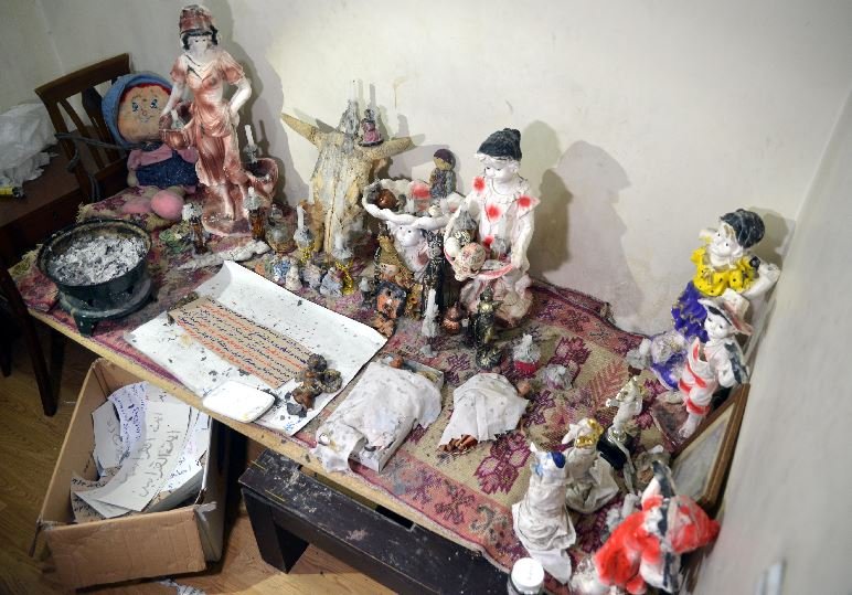 Büyü merkezi olarak kullanılan evde yapılan aramada ele geçirilen eşyalar ise polisleri bile şaşkına çevirdi. Evde, büyü yapmada kullanıldığı öğrenilen kuru öküz kafası, küçük oyuncak bebekler, kırmızı renkli heykeller ve sandalyeye halatla bağlanmış oyuncak bebekler ele geçirildi. Büyü yapmada kullanılan çok sayıda eşyaya el konuldu.Öte yandan gözaltına alınan Suriye uyruklu şüphelilerin 1 yıl öncesine kadar belediyeden yemek yardımı aldığı, son 1 yıldır ise büyü yapma vaadiyle vatandaşlardan dolandırdıkları paralarla cip ve villa satın alarak, lüks yaşam sürdüğü belirlendi. Polis, operasyon kapsamında 2 kişiyi arama çalışmalarını ise sürdürüyor. (DHA)İlginizi Çekebilir