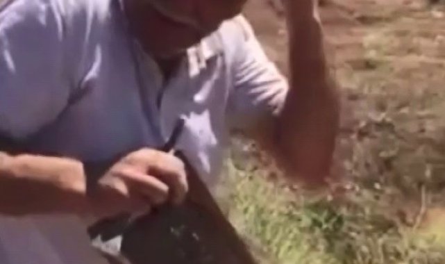 Erzurum'da bir vatandaş dede mesleği diyerek arı dolu peteği önlem almadan eline aldı. Kızgın arıların saldırısına uğrayan Erzurumlu vatandaşın arılarla imtihanı izleyenleri güldürdü.Erzurum'da bir vatandaş hiçbir önlem almadan arılarla dolu olan bal peteğini eline aldı. Bu iş dede mesleği diyerek peteği elinde tutan vatandaş bir anda kızgın arıların saldırısına uğradı. 'Beni yiyorlar' diyerek olduğu yerden hızla kaçan vatandaşın arılarla imtihanı izleyenleri ise güldürdü.