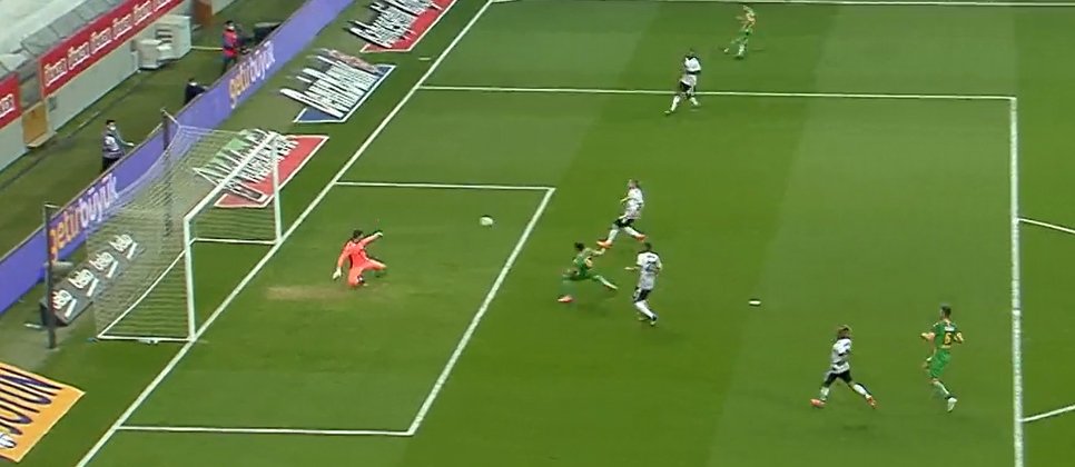Beşiktaş savunmasını hazırlıksız yakalayan ve hızlı hücuma çıkan Alanyaspor’da Adam Barreiro sağ kanattan ceza sahası içine girdi. Kaleci Ersin Destanoğlu’nun pozisyon kaybı yaşadığı sırada, Barreiro ceza sahası içine hareket eden Babacar’a yerden pas verdi. 28 yaşındaki Senegalli forvet, Ersin Destanoğlu’nun kalesini boş bırakması nedeniyle topu ağlara yollayacakken vuruş zamanlamasını iyi ayarlayamayınca müsait pozisyonda dışarı vurdu.