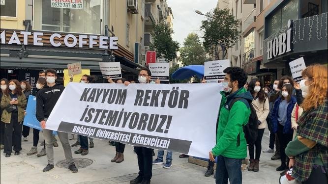 Boğaziçi Üniversitesi Rektörlüğü’ne Melih Bulu’nun atanmasıyla başlayan protestolar devam ediyor. Boğaziçi Üniversitesi öğrencileri bugün Rektörlük önünde gerçekleştirdikleri eylemin ardından saat 16.00’da Kadıköy’de yapacakları kitlesel eylem için slogan atarak Bebek kampüsünden çıkış yaptı. Beşiktaş İskelesi’ne doğru yürüyen öğrencilere yoldan geçen vatandaşlar da destek verdi.ALKIŞLARLA KARŞILANDILARBoğaziçi Üniversitesi öğrencileri vapurlarla Kadıköy’e ulaştı. Öğrenciler burada kalabalık bir grup tarafından alkışlarla karşıladı. Rıhtım Meydanı’nda TOMA’ların ve polisin hazır beklediği görüldü.‘Zıpla, zıpla, zıplamayan kayyumdur’, ‘Yaşasın öğrenci dayanışması’, ‘Kayyum rektör istemiyoruz’, ‘Gözaltılar serbest bırakılsın’ şeklinde sloganlar atan öğrenciler, Rıhtım Meydanı’nda bir basın açıklaması okuyarak taleplerini sıraladı. Öğrencilerden İdil Kaya tarafından okunan basın açıklamasında üniversiteye atanan kayyumun ülke gerçekliğinden kopuk olmadığı belirtilerek, şu ifadelere yer verildi:“ALIŞMAYACAĞIZ, KABULLENMEYECEĞİZ!”* Kayyım rektör Melih Bulu'nun canlı yayındaki iddialarının aksine, biz burada Boğaziçi Üniversitesi'nin azınlığını değil ta kendisini temsil ediyoruz! Biz Boğaziçi Üniversitesi'nin bileşenleri olarak kayyım rektör atamasına karşıyız. Kayyım politikalarının bizi hep kötüye götüreceğini biliyoruz, alışmayacağız, kabullenmeyeceğiz!
