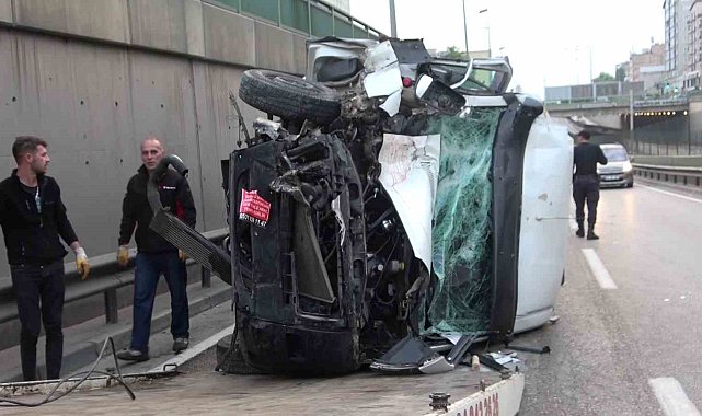 Bursa'da direksiyon hâkimiyetinin kaybedilmesiyle önce bariyerlere ardından öndeki minibüse çarpan minibüs devrildi. Devrilen minibüsün sürücüsü yaralandı.Kaza Bursa'nın Yıldırım ilçesi, Esenevler Kavşağı alt geçidinde meydana geldi. H.K.'nin hâkimiyetindeki 16 BAB 453 plakalı ticari minibüs yol hakimiyetini kaybetti. Önce bariyerlere ardından H.S. hakimiyetindeki 16 ANV 153 plakalı minibüse çarptı. Kazanın şiddetiyle alt geçitte yan yatan minibüsteki sürücü H.K. yaralandı.Kaza sonrası olay yerine çok sayıda emniyet ve 112 Acil Sağlık Ekibi sevk edilirken, kazada yaralanan H.K. Yüksek İhtisas Eğitim ve Araştırma Hastanesine kaldırıldı. Polis ekipleri kaza ile ilgili tahkikat başlattı.