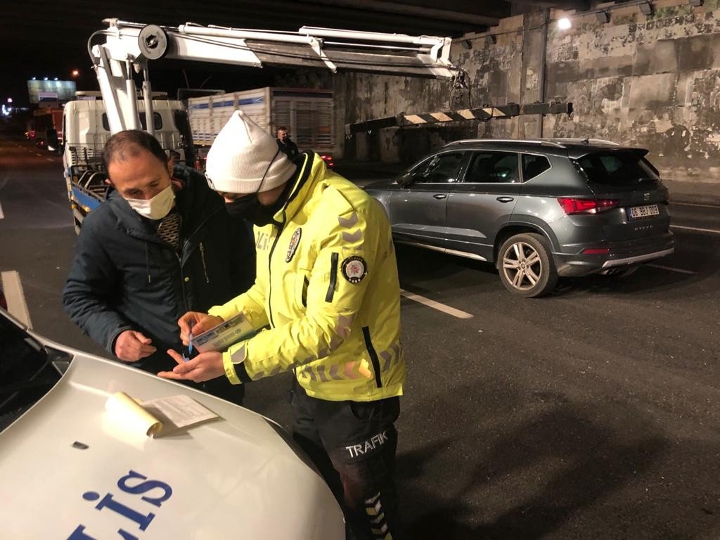 Ankara'da sokağa çıkma kısıtlamasında polis ekipleri cadde ve sokaklardaki kontrol noktalarında çalışmalarını sabaha kadar sürdürüyor.Eskişehir Yolu üzerindeki kontrol noktasında sürücüleri durduran polis ekipleri, alkollü olduğundan şüphelendikleri araç sürücüsü Can T.'ye alkol muayene testi yaptı.Polisler, 152 promil alkollü olduğu ve yanındaki arkadaşıyla birlikte sokağa çıkma kısıtlamasını ihlal ettiğini tespit ettikleri iki arkadaşa, toplam 7650 TL idari para cezası uyguladı. Sürücünün ehliyetine de el koyulurken araç, çekici vasıtasıyla otoparka götürüldü.