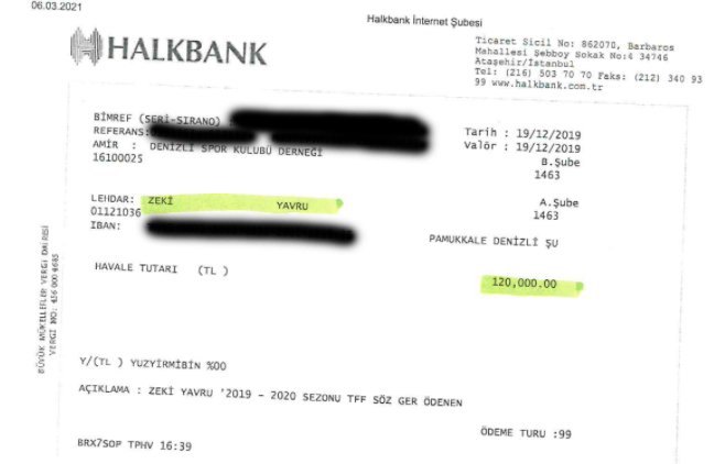 Yeşil siyahlı kulüp eski futbolcusunun parasını almadığı iddialarını yalanladı. 20 adet banka dekontu paylaşan Denizlispor yönetimi futbolcuya 1 milyon 226 bin liralık maaş ve 445 bin liralık prim ödemesi yapıldığını duyurdu.Başkan Ali Çetin yaptığı açıklamada, “Eski futbolcularımızdan Zeki Yavru'ya geçtiğimiz sezon boyunca toplam 1 milyon 226 bin TL maaş ve 445 bin TL prim ödemesi yapılmıştır. Denizlispor Kulübü'nden ekmek yemiş bir futbolcunun, eski kulübüne karşı attığı bu iftirayı kınıyor, kendisini vicdanı ile baş başa bırakıyoruz. Değerli kızımızın tedavisi için elimizden gelen tüm desteği verdiğimizi kendisine hatırlatır, kızının tedavisi için izin konusunda kendisine sağladığımız esnekliğin ise tüm kamuoyu tarafından bilinmesini isteriz” diye konuştu.Diğer yandan yeşil siyahlı kulübün eski futbolcusu Zeki Yavru ile alacak konusu nedeniyle mahkemelik olduğu öğrenildi.