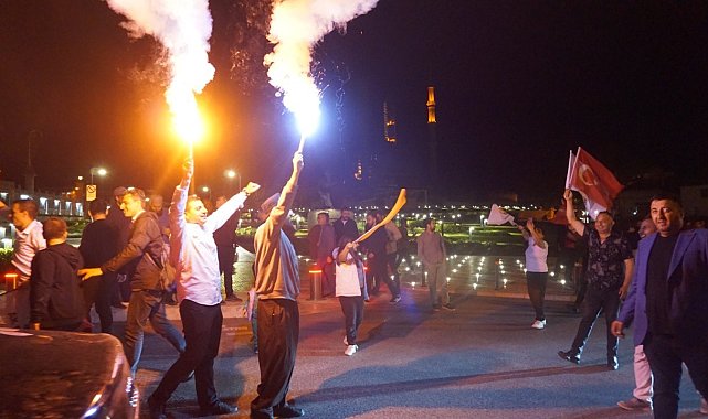 Cumhurbaşkanı Recep Tayyip Erdoğan'ın resmi olmayan sonuçlara seçimden zaferle çıkması Edirne'de coşkuyla kutlandı.Seçim sonuçlarının netleşmeye başlamasıyla birlikte merkez ve ilçelerde kutlamalara erken başlandı. Vatandaşlar Türk bayrakları ve Recep Tayyip Erdoğan posterleri ile Selimiye Camii etrafı başta olmak üzere şehrin sokaklarında araçları ile konvoy halinde kutlamalarını sürdürüyor. Alanda toplanan yüzlerce vatandaş, ellerinde Türk bayraklarıyla 13. Cumhurbaşkanlığı seçimlerini önde götüren Recep Tayyip Erdoğan'ın mutluluğunu yaşıyor. Büyük sevinç yaşayan coşkulu kalabalık kurulan sahne ve platformda seçimle ilgili son gelişmeleri canlı takip ediyor.