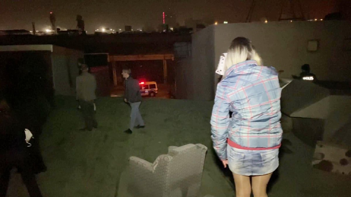 Adrese operasyon düzenleyen ekipler, kapının kilitli olması ve içeriden müzik sesleri gelmesi nedeniyle megafonla uyarıda bulundu.Kapının açılmaması üzerine itfaiye ekibinin yardımıyla çatıya çıkan polis, aralarında kadınların da bulunduğu, saklanmaya çalışan 40 kişiyi yakaladı.Bazı kişilerin çatının ‘sundurma’ diye tabir edilen bölümünün altında, bazılarının da hurda araçların arasında saklandığı görüldü.