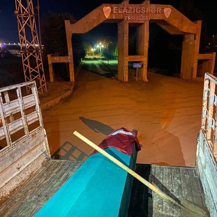 Küme düşen kulübün önüne araçla Elazığspor’un forması örtülü tabut götürülmesi de dikkat çekti.