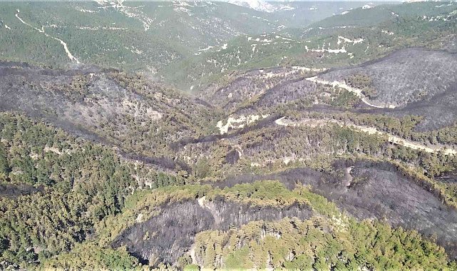 Kütahya'nın Emet ilçesinde Küreci ile Samrık köyleri arasındaki ormanlık alanda çıkan orman yangını karadan ve havadan yapılan yoğun mücadele ile kontrol altına alınırken, yanan alanlar havadan görüntülendi.Emet Orman İşletme Müdürlüğü Değirmisaz İşletme Şefliği sınırlarında çıkan yangın, 26 helikopter, 9 uçak, 8 dozer, 19 tanker, 78 arazöz, 13 su ikmal aracı, 5 greyder, 3 ekskavatör, 13 treyler, 10 ilk müdahale aracı, 485'i orman personeli olmak üzere 800'e yakın görevlinin cansiperane mücadelesi sonucu kontrol altına alındı. Yangının verdiği hasar ise gün ağardığında ortaya çıktı. Yanan alanlar dronla ve yangın kulesinden görüntülendi.Kütahya Orman Bölge Müdürü Birol Dündar, bölgedeki ekiplerin yoğun gayretiyle yaklaşık 270 hektarlık alanda etkili olan yangının kontrol altına alındığını ve soğutma çalışmalarına başlandığını belirtti. 24 saate varmadan tüm kurumların da desteği ile yangına karşı mücadelenin tamamlandığını söyleyen Dündar, "Yarınlarımız olan ormanlarımızı korumak uğruna kendini alevlere siper eden, gecesini gündüzüne katarak yangınlara karşı mücadele veren orman kahramanlarımıza ve emeği geçen tüm kurum ve STK'lara teşekkür ediyorum" dedi.