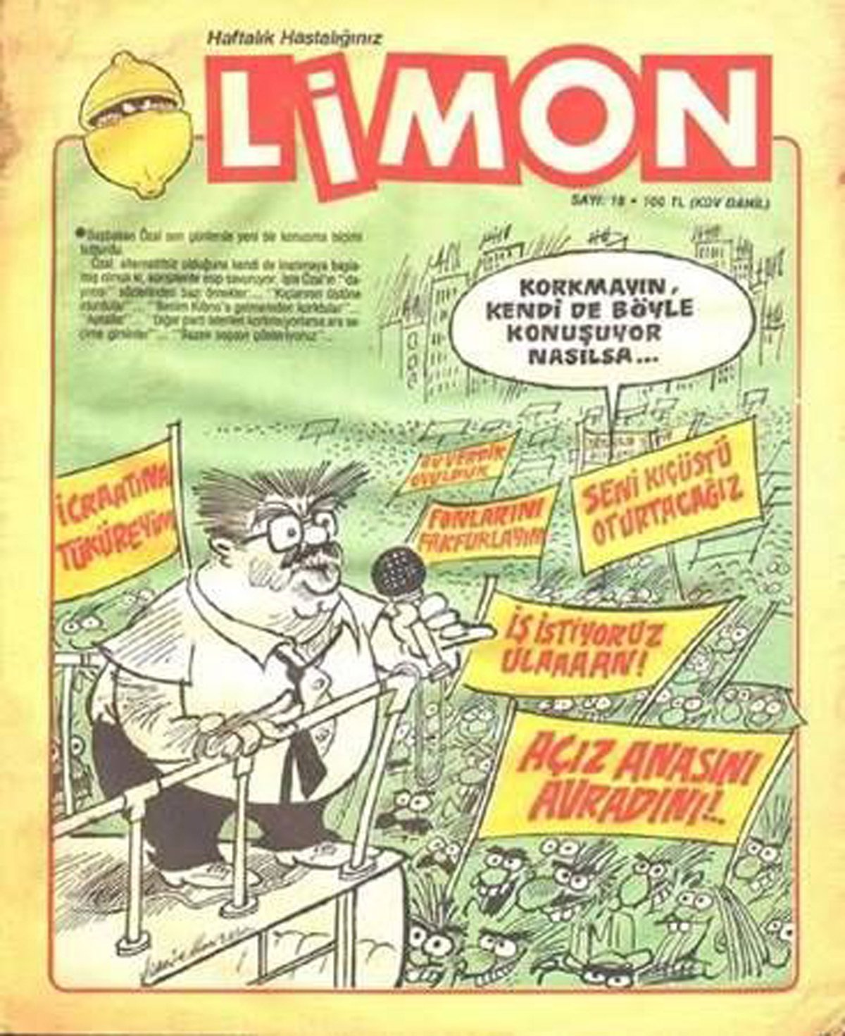 Limon, Turgut Özal'ın seçim mitinglerini bu karikatürle kapağına taşımıştı.
