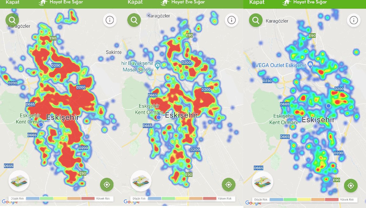 Son 1 ayda günlük ortalama 500 kişinin pozitif çıktığı Eskişehir’de yeni vaka sayısı 100’e kadar geriledi. Vakalardaki düşüş HES uygulamasındaki risk haritasına da yansıdı. Kısıtlamalardan önce neredeyse tamamı kırmızı olan kent haritası yeşile döndü. Corona virüs nedeniyle 185’i son 1 ayda olmak üzere kentte 680 kişi hayatını kaybetti.Sokağa çıkma kısıtlamaları, testi pozitif çıkan ancak belirti göstermediği için evlerinde tedavi görenleri de etkiledi. Kısıtlamalar öncesinde 6 binin üzerinde olan evde tedavi gören hasta sayısı bin 91’e kadar düştü.
