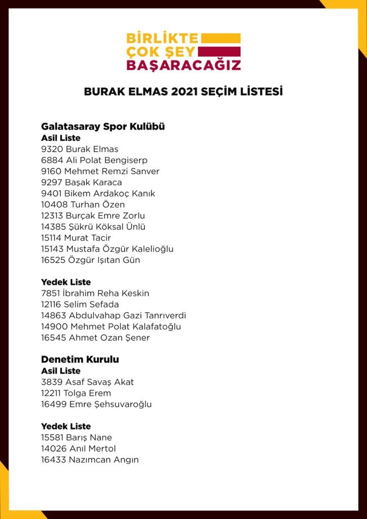 Belirlenen tüzük çerçevesinde seçim sürecinin devam ettiğine işaret eden Elmas, “Galatasaray Spor Kulübü’nün üyelerince kabul edilmiş tüzüğün şartları bellidir. Bu tüzük çerçevesinde, tüzüğümüzün ön gördüğü şekilde bir seçim dönemi başlamıştır. Bu dönem eksiksiz devam etmektedir. Galatasaray’da seçim geriye bırakılamaz. Bu seçim 29 Mayıs’ta olacak. Engellemeye çalışanların olduğunun farkındayız. Bizle temasa geçen Galatasaraylıların da bundan rahatsızlık duyduğunu görüyoruz. Dediğim gibi Galatasaray demokrasisi bizim için çok önemli. Bu demokrasinin kişisel kaygılarla veya ihtiyaçlarla zedelenmesine asla izin vermeyeceğiz” şeklinde konuştu.