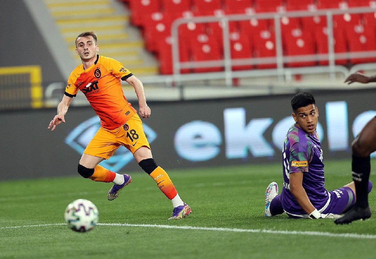 Galatasaray, 64. dakikada Halil Dervişoğlu ile penaltı kazandı. Obinna’nın yaptığı faul sonrasında hakem Fırat Aydınus beyaz noktayı gösterdi. Topun başına geçen gecenin yıldızı Kerem Aktürkoğlu, topu filelere göndererek takımını 3-1’lik üstünlüğe taşıyıp hat-trick yapmayı başardı.Geceye damgasını vuran 22 yaşındaki futbolcu, 68’de yerini Onyekuru’ya bıraktı.