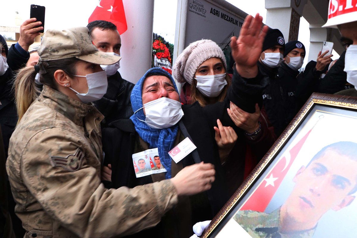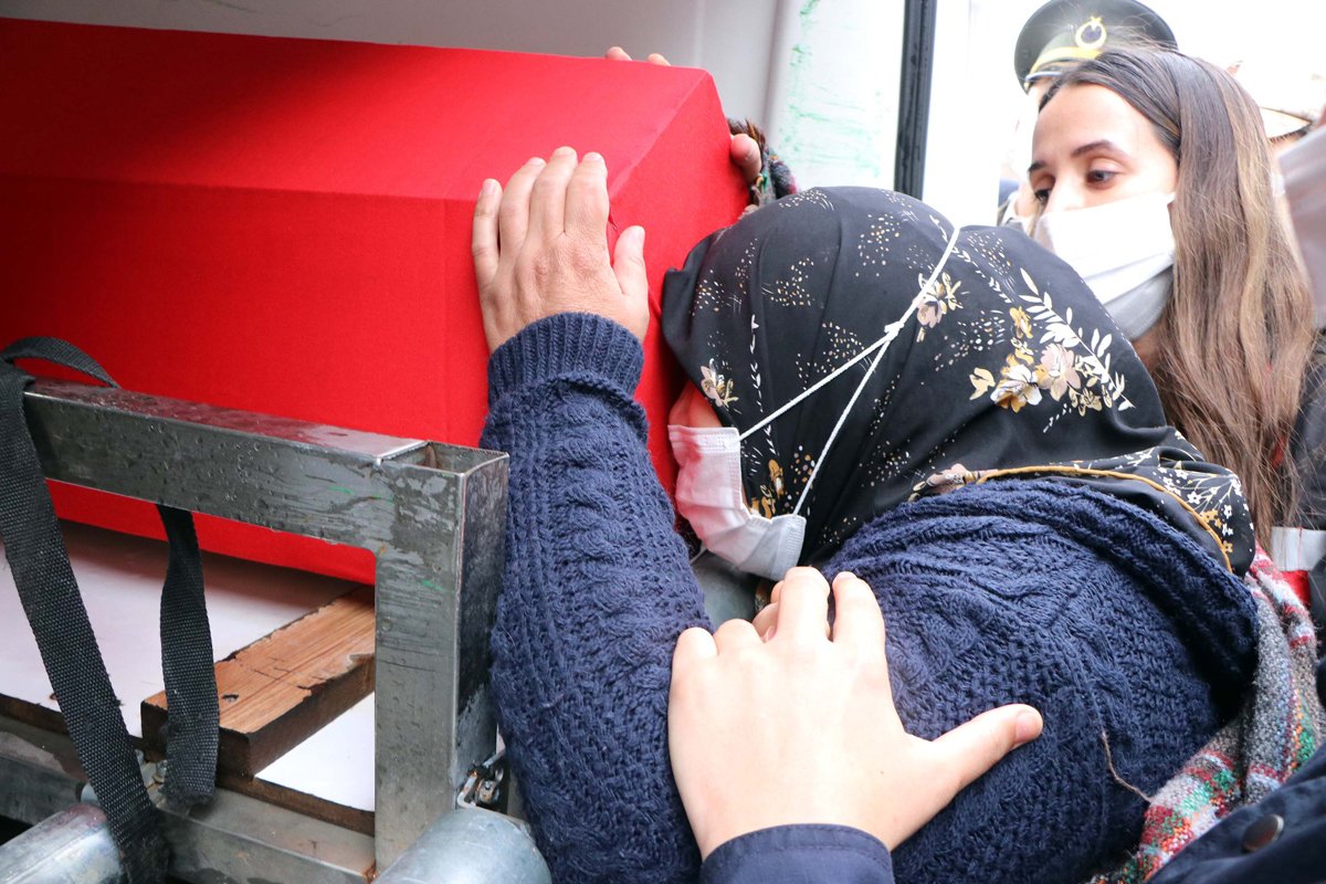 Cenaze töreninde, şehitlerden Müslüm Altıntaş’ın babası Şevket Altıntaş ile annesi Songül Altıntaş güçlükle ayakta durdu. Adil Kabaklı’nın annesi Cennet Kabaklı ise oğlunun Türk bayrağına sarılı tabutunu okşayıp fotoğrafına bakarak gözyaşı döktü.