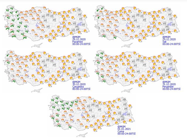 Yer yer kar yağışları kendini gösterse de son yılların en sıcak ve kurak aralık aylarından birini geride bırakıyoruz. Meteoroloji’nin bu haftaya dair tahminlerine göre sıcaklıklar yüksek seyretmeye devam edecek. Ege kıyılarını ve Marmara Bölgesi’ni yer yer etkileyecek sağanak yağmur dışında yağış beklenmiyor.GEÇEN SENE KAR GÖREN İSTANBUL BU SENE BAHARDAN KALMA GÜNLER YAŞIYORGeçtiğimiz sene aralık ayı sıcaklıkları yine mevsim normallerinin üzerinde seyretmiş olmasına rağmen 27 Aralık 2019’da İstanbul yılın ilk kar yağışını yaşamış, kentin yüksek kesimlerinde beyaz örtü oluşmuştu. Bu sene aynı günlerde İstanbul sonbahar sıcaklıklarını yaşıyor, bugün yer yer görülecek yağmurun ardından, hafta boyunca parçalı bulutlu ve ılık bir hava bekleniyor.