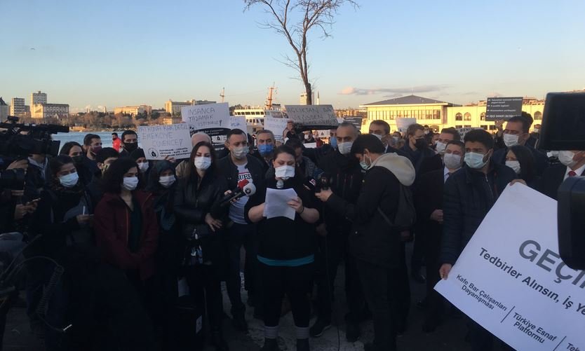“İŞ YERLERİ KAPALI AMA KİRA ÖDEMEYE DEVAM EDİYORLAR”Durumun esnaf açısından da içler acısı olduğunun belirtildiği açıklamada, “İş yerleri kapalı ama kira ödemeye devam ediyorlar. Hükümetin verdiği kira desteği 750 TL. İstanbul'da merkezi yerlerdeki kira bedelleri 10 bin TL'den başlıyor. Verilecek olan kira yardımı, kiraların yüzde 10'u bile değil” ifadeleri kullanıldı. Esnaf ve sektör çalışanları, “Tedbirler alınsın, iş yerleri açılsın, yasaklar kaldırılsın” çağrısı yaptı.“GEREKLİ HİJYENİ MEKANLARDA SAĞLARIZ”SÖZCÜ'ye açıklamada bulunan Kafe-Bar Çalışanları Dayanışması Söczüsü Göksu Uyar, şöyle konuştu:* Bizim talebimiz şu: AVM'ler açık, toplu taşıma var. Tedbirler alınsın, HES kodu gibi önlemler alınsın ve işletmeler açılsın. Neden bu sektör bu kadar kapanıyor. Biz mekanlarda gerekli hijyen kurallarını sağlarız . Bugüne kadar yerine getirilmeyen taleplerimizin gerçekleştirilmesini istiyoruz.“15 ELEMANIM VARDI, ŞİMDİ GELİRLERİ YOK”Tekel bayi işletmecisi Ali Ekber Uçur ise şu ifadelere yer verdi:* Salgın sürecindeki olumsuzluklarda devletimizden teşvik ve destek bekledik fakat bunu görmedik. Uzun zamandır herhangi bir teşvik alamadık, mağduruz. Ciddi anlamda mağduruz. Salgından önce 15 elemanım vardı, bu süreçte şimdi hepsi mağdur oldu. Herhangi bir gelirleri de yok. Sektörler olarak birbirimizden etkileniyoruz. Hepimiz mağduruz. Bir an önce bir şekilde yardım sağlanmasını istiyoruz.İlginizi Çekebilir