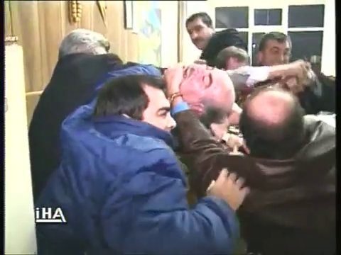 Elinde mikrofon olan kişi aslında Emniyet Amiri Mehmet Şahin’di. Şahin, “Bu adamlar Türk düşmanı g…….” diyen İshak Benlioğlu'na sorular sorarak dikkatini dağıtmaya çalışıyordu.“Sesiniz gelmiyor, mikrofonu yaklaştıralım” derken kameramanın önünde pusuya yatan İstanbul Emniyet Müdür Yardımcısı Mehmet Çağlar katilin eline yapıştı.