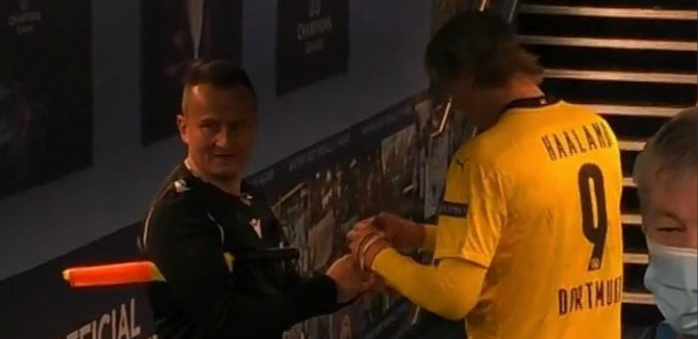 Şampiyonlar Ligi'nde oynanan Manchester City-Borussia Dortmund maçından sonra, çizgi hakeminin Erling Haaland'dan imza istemesi olay yarattı. Yorumcular durumun etik olmadığını söylerken, Manchester City Pep Guardiola durumu doğal karşıladı. Şampiyonlar Ligi Çeyrek Final ilk maçında Borussia Dortmund’u ağırlayan Manchester City, 90. dakikada attığı golle 2-1 galip gelirken, Alman ekibinin yıldız forveti Erling Haaland gol orucunu bozamadı.Ancak Marco Reus’un 84. dakikada attığı golün asistini yapan Norveçli forvet, maçtan sonra koridorda hakeme imza vermesiyle de gündeme oturdu. Kritik maçta yan hakem olarak görev yapan Rumen Octavian Sovre, karşılaşma sonrası koridorda yakaladığı Haaland’ın, sarı ve kırmızı kartlarına imza atmasını istedi.