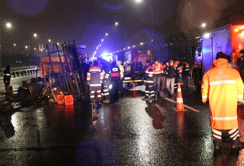 Kaza, 02.30 sıralarında Eyüpsultan Haliç Köprüsü, Ankara istikametinde meydana geldi. İddiaya göre, sürücüsünün ismi öğrenilemeyen 34 ZD 9174 plakalı çekici, önce köprü üzerinde çalışma yapan İstanbul Büyükşehir Belediyesi’ne bağlı Yol Bakım ve Altyapı Koordinasyon Daire Başkanlığı’na bağlı ekibin eskort adı verilen ışıklı yön levhasına çarptı.Çarpmanın etkisiyle savrulan çekici, bakım ve onarım çalışması yapan 32 yaşındaki Samet Kaya’nın kullandığı 34 TP 2096 plakalı kamyona çarptı. Işıklı yön levhasını kontrol etmek üzere kamyondan inen Samet Kaya, çekicinin çarpması ile savrulurken, çekici sürücüsü ise aracın içerisinde sıkıştı. İhbar üzerine olay yerine çok sayıda sağlık, itfaiye ve polis ekibi sevk edildi.HASTANEYE GİDERKEN HAYATINI KAYBETTİSağlık ekipleri tarafından ilk müdahalesi olay yerinde yapılan Samet Kaya, ambulansla hastaneye kaldırılırken yolda hayatını kaybetti. Çarpmanın etkisiyle araçta sıkışan ve ismi öğrenilemeyen çekici sürücüsü ise olay yerinde hayatını kaybetti.