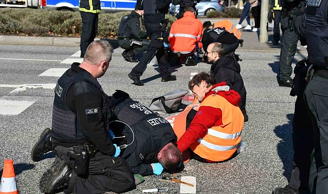 Almanya'nın Hamburg kentinde iklim aktivistlerinin ellerini asfalta yapıştırması sonucu trafik durma noktasına geldi.Almanya'nın Hamburg kentinde 3 haftadır eylem yapan iklim aktivistleri, Elbe Tünelinin (Elbtünnel) girişi ve Elbe Köprüsü'nün (Elbbrücken) çıkışı olmak üzere iki ayrı noktada eylem gerçekleştirdi. Arabalardan inerek yola oturan eylemciler, ellerinde pankartlarla slogan attı. İklim aktivistlerinin ellerini asfalta yapıştırmasının ardından tünel ve köprü trafiğe kapatılırken, şehir merkezine kadar 30 kilometrelik araç kuyruğu oluştu. Olay yerine çok sayıda polis ekipleri, itfaiye ve ambulans sevk edildi. Uzman polis ekipleri yanlarında getirdiği, zeytinyağı, ele zarar vermeyen çözücü ilaç ve diğer aletlerle uzun uğraşlar sonrası eylemcilerin ellerindeki yapıştırıcıyı çıkardı.Polis, eylemcileri gözaltına aldı.