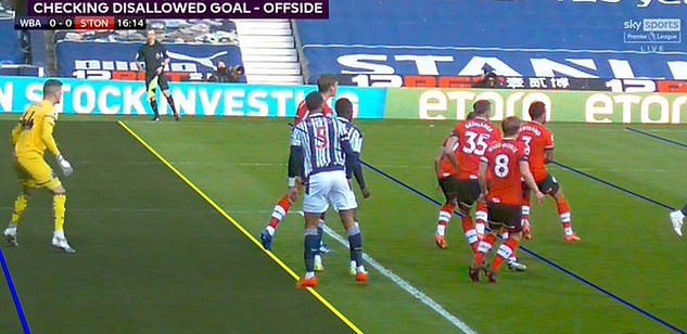 Futbolda yeni dönem: Yarı Otomatik Ofsayt!İlk yarının sona ermesinin ardından Sky Sports’ta yapılan programda, saha kamerasının yanlış konumlandırılması nedeniyle net bir ofsayt çizgisi çekilemediği ve Diagne’nin ofsaytta olduğu kararı ortaya çıktı.WBA oyuncusu Darnell Furlong’un vuruşu sırasında takım arkadaşları Kyle Bartley ve Mbaye Diagne’nin yanı sıra Southampton savunmacısı Jannik Vestergaard’ın pozisyonu kafa karışıklığına neden oldu. Birçok açıdan Bartley’in ofsaytta olduğu net şekilde görünürken, Diagne’nin o sırada geride olduğu iddia edildi.