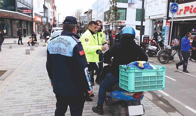 Düzce Belediyesi Zabıta Müdürlüğü ekipleri, motorlu taşıtların girişinin yasak olduğu İstanbul Caddesi üzerinde denetim yaptı. İl Emniyet Müdürlüğü ekipleri ile birlikte yürütülen denetimlerde evrak kontrolü yapılan taşıt sürücülerine uyarı ve cezai yaptırım uygulandı.Düzce Belediyesi şehri merkezinin muhtelif noktalarında özellikle yaya trafiğini engelleyecek durumlara karşı denetim çalışmalarını sürdürüyor. İl Emniyet Müdürlüğü ekipleri ile iş birliği halinde yürütülen denetimler yalnızca yaya trafiğine açık olan İstanbul Caddesi üzerinde motorlu araç kullananlara evrak kontrolü yapılarak yasak alan içinde motorlu taşıt kullanmaktan uyarıda bulunuldu. Caddeye motorlu taşıt girmemesi konusundaki yönetmeliğe birden fazla kez aykırı davranan araç sürücülerine ise cezai işlem uygulandı.Zabıta Müdürlüğü ekipleri, cadde üzerinde belirli periyotlarla denetimlerin devam edeceğini aktararak "Emniyet ekiplerimizle birlikte yürüttüğümüz denetimlerde İstanbul Caddesi üzerindeki yaya trafiğine tehlike oluşturacak unsurları ortadan kaldırıyoruz. Bugünkü denetimlerimizde 12 motor kullanıcısının evraklarını kontrol ederek yasak alanda motorlu araç kullanımından uyarı ve işlem yaptık. Caddeye motorlu araçların girişi ile ilgili tüm detaylar ilgili yönetmelikte yer alıyor, saatleri bellidir. Bu saatler dışında yasak alanda araç kullanan vatandaşlarımız ne yazık ki cezai yaptırım ile karşılaşacaklar. İstanbul Caddesi'nde özellikle motor kullananlar tehlikeli sürüş bir yana yayaların da hareketini kısıtlıyor. Bu konuda bir kez daha uyarmakta fayda var. Serbest saatler dışında İstanbul Caddesi'ne her türlü motorlu aracın girişi yasaktır" ifadelerini kullandı.