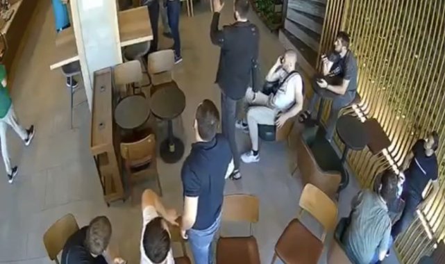 Aksaray'da bir kafeteryada oturan iki grup alacak verecek meselesi yüzünden birbirine girdi. Güreşir gibi kavga eden taraflar, bir süre sonra ayrılıp hiçbir şey olmamış gibi kafeteryadan çıkarak kayıplara karışırken, kavga anları ise kameraya yansıdı.Fatih Aksaray'da geçtiğimiz günlerde saat 16.30 sıralarında meydana gelen olayda, bir kafede oturan iki grup alacak verecek meselesi yüzünden tartışmaya başladı. Kısa sürede büyüyen tartışma kavgaya dönüşürken, gruptan bir şahıs, karşısındaki gence tokat atınca taraflar birbirine girdi.Ortalık bir anda karıştı, kafe er meydanına döndüKarşısında bulunan şahsın tokat attığı genç, güreşir gibi rakibini tutarak arkaya doğru attı. Bu sırada masada oturan arkadaşları araya girmek isteyince ortalık karıştı. Birkaç dakika süren kavganın ardından ayrılan taraflar, daha sonra hiçbir şey olmamış gibi çantalarını alarak kafeden ayrıldı. Tarafların birbirlerinden şikayetçi olmadığı öğrenildi.Güreşçi gibi kündeye getirdiFatih Aksaray'da yabancı uyruklu şahıslar arasında yaşanan kavga anı ise kameraya yansıdı. Görüntülerde, şahısların kavgaya tutuşup güreştikleri sırada arkadaşlarının ayırmaya çalıştığı daha sonra da ayrılan şahısların, çantalarını alarak hiçbir şey olmamış gibi kafeden çıkıp gittikleri görülüyor.