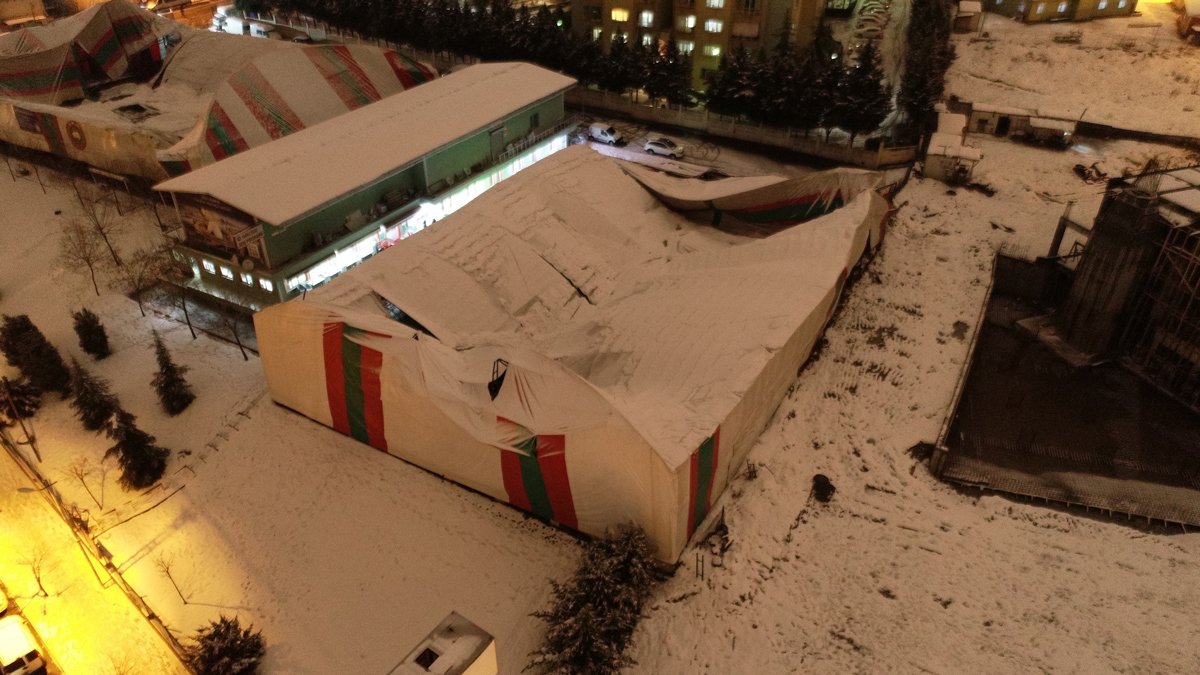 İtfaiye ekipleri çöken çatıyı incelerken, polis ekipleri de güvenlik önlemi aldı. Kimsenin olmadığı halı sahada meydana gelen çökme soncu çatı kullanılamaz hale geldi. Kapalı halı sahanın çöken çatısı drone ile havadan görüntülendi. DHAİlginizi Çekebilir