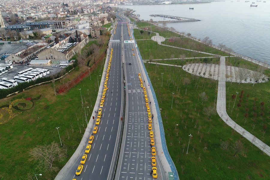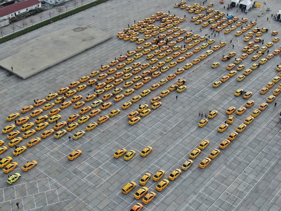 Güncellemenin üçüncü gününde Yenikapı Etkinlik alanında başlayan kuyruk, Kazlıçeşme’ye kadar uzadı. Saatlerdir kuyrukta bekleyen taksiciler ise, duruma isyan etti. Kilometrelerce oluşan kuyruk havadan görüntülendi.