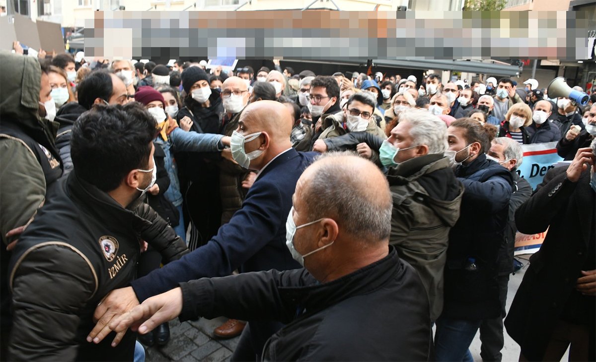 İzmir’in Alsancak ilçesinde üniversite öğrencileri saat 17.00’da Türkan Saylan Kültür Merkezi önünde toplanıp basın açıklaması gerçekleştirmek istedi.Basın açıklaması için alana girmek isteyenlere polisin müdahale ettiği iddia edildi.Sert müdahaleler görüntülere yansıdı. Birçok kişinin gözaltına alındığı öğrenildi.SAHİLDE TERS KELEPÇEPolisin müdahalesi Alsancak sahilinde devam etti. Biber gazı atan polis plastik mermiyle kalabalığı dağıtırken birçok kişiyi ters kelepçe ile gözaltına aldı. Polisin müdahalesi sırasında bazı kişilerin ‘Biz burada sahilde oturuyorduk’ diye haykırdığı duyuldu. CHP’Lİ VEKİL: SALDIRIYA UĞRADIKİzmir Alsancak’ta öğrencilerin eylemine katılan CHP İzmir Milletvekili Mahir Polat, polis tarafından saldırıya uğradığını duyurdu. Basın açıklamasına polisin saldırdığını öne süren Polat, “Milletvekili olduğumuzu söylememize rağmen hedef gösterilerek saldırıya uğradık” dedi.