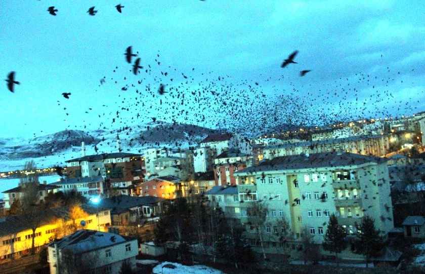 Ünlü yönetmen Alfred Hitchcock’un ‘Kuşlar’ isimli gerilim filmi, Ardahan’da gerçek oldu. Filmin çekiminin yapıldığı Pasifik kıyısındaki Bodega kasabası gibi Ardahan da kargaların istilasına uğradı. Toplu halde gökyüzünde uzun süre uçan kargalardan bir kısmı, havanın kararması ile binaların çatısında tünerken, bir kısmı da çevredeki ağaçlara konuyor.Ağaçların ve binaların tepesi ise kuşlardan görülmez hale geliyor. Güneşin battığı anlarda ortaya çıkan binlerce karganın birlikte uçtuğu anlar, ilginç görüntüler oluşturuyor. Kentte yaşayanlar, karga istilasından endişe duyduklarını, çıkardıkları sesten de rahatsız olduklarını dile getirdi.