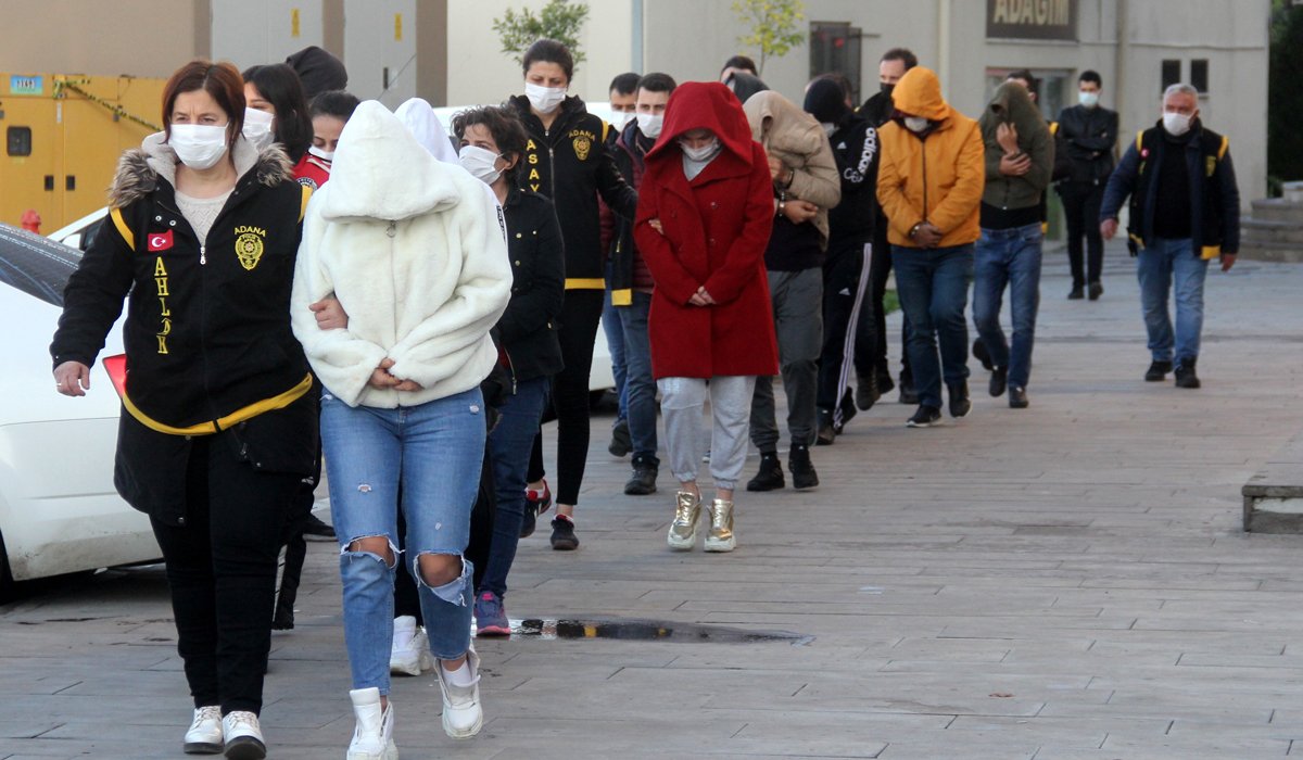 Foto: İHA/ Operasyonda gözaltına alınan 14 zanlıdan 5'i ifadesi alındıktan sonra serbest kalırken 4'ü kadın 9 zanlı adliyeye sevk edildi.