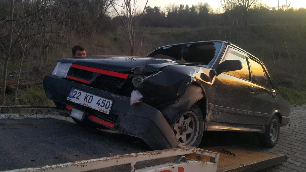 Eski TOKİ evleri girişi Ahmet Taşçı Caddesi üzerinde yaşanan kazada, 22 KD 450 plakalı otomobil, sürücü A.Ç.nin park halindeki kamyona çarpmamak için manevra yapması üzerine kontrolden çıktı. Otomobil, yol kenarındaki ağaca çarpıp, durdu.