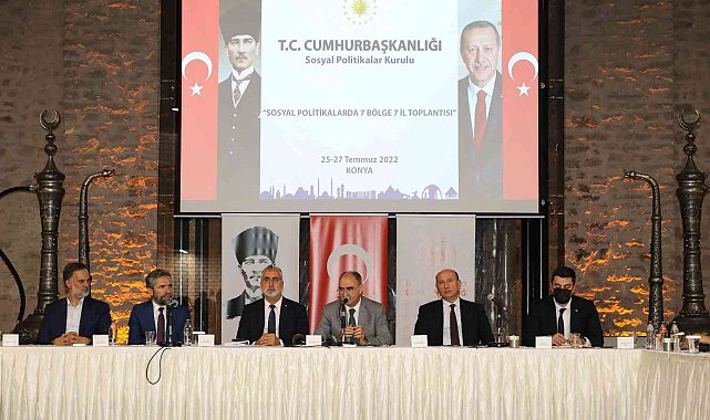 Konya'da, Cumhurbaşkanlığı Sosyal Politikalar Kurulunun "Sosyal Politikalarda 7 Bölge 7 İl Projesi" çerçevesinde toplantı gerçekleştirildi.Sosyal Politikalarda 7 Bölge 7 İl Projesi'nin ev sahiplerinden biri olan Konya'da toplantı düzenlendi. Cumhurbaşkanlığı Sosyal Politikalar Kurulu Başkan Vekili Prof. Dr. Vedat Işıkhan, Çalışma Sosyal Güvenlik Bakan Yardımcısı ve aynı zamanda Kurul Üyesi Prof. Dr. Lutfihak Alpkan ve Kurul Üyeleri Prof. Dr. Recep Şentürk, Dr. Murat Yılmaz, Dr. İbrahim Altan ve Uzman Onur Kılıç'ın içinde bulunduğu kurul, program çerçevesinde Konya'ya gelerek Vali Vahdettin Özkan'ı makamında ziyaret etti. Daha sonra Vali Özkan ve kurul üyeleri ildeki STK temsilcileri ile toplantıda bir araya geldi. Tantavi Kültür Merkezi'nde gerçekleştirilen toplantıda sosyal politika odağında şehrin çözüm bekleyen önemli sorunları görüşüldü. Toplantıya katılan temsilciler, kendi çalışma alanları ile ilgili yaşanan sorunları ve çözüm stratejilerini kurula sundu.Toplantı sonunda basın açıklaması yapan Cumhurbaşkanlığı Sosyal Politikalar Kurulu Başkan Vekili Prof. Dr. Vedat Işıkhan, kurul olarak 7 Bölge 7 İl Projesi çerçevesinde ikinci ziyareti Konya'ya yaptıklarını ve bundan dolayı çok memnuniyet duyduklarını ifade etti. Türkiye'de sosyal politikalar alanında son 20 yılda çok önemli ve köklü değişimler yaşandığına hep birlikte şahit olduklarını kaydeden Işıkhan, "Başta sağlık, eğitim olmak üzere sosyal yardım, sosyal hizmetler alanında yaşanan bu atılımlar ülkemizin refah düzeyinin artmasında önemli bir yere sahiptir. Sosyal politikalarımızın temelinde 'insanı yaşat ki devlet yaşasın' felsefesinde vücut bulan sosyal devlet anlayışı yatmaktadır. Hükümetlerimiz ilk günden itibaren insanımızın yaşam standardını geliştirmek için hak temelli sosyal politikaları uygulamaya koymuştur. Bu başarılı politikalarda sosyal devlet son 20 yılda adeta ayağa kaldırılmıştır. Sosyal politikaların en önemli hedefi sosyal adaletin, sosyal refahın sağlanmasıdır. Cumhurbaşkanlığı Hükümet Sistemi'ne geçişle birlikte Sosyal Politika Kurulu olarak kamu kurum ve kuruluşlarımızın uygulamalarını değerlendirmek, vatandaşlarımızın yerelde yaşamış olduğu sorunları yerinde gözlemlemek ilkesinde ve görevinden hareket ederek böyle bir projeyi planladık. Çok önemli veriler elde edildi. Konya'mızı temsil eden il müdürleri başta olmak üzere üniversite temsilcileri, aynı zamanda sivil toplum kuruluşları, iş adamlarımız ve dezavantajlı grupların temsilcileri ile çok önemli fikir alışverişinde bulunduk. Çok önemli sorunları dile getirdiler. Biz bunları not aldık ve Ankara'ya döndüğümüz andan itibaren de bunları raporlaştırıp bir üst makama arz edeceğiz" dedi.Ülkenin kalkınmasında sosyal politikanın çok önemli bir yere sahip olduğunu vurgulayan Işıkhan, "Bizim de temel görevimiz, bize verilen görev doğrultusunda sosyal politika alanında ihtiyaç gruplarına yönelik politika stratejileri geliştirmektir. Sosyal politika sadece bir gruba, sınıfa, kesime hitap etmiyor. Toplumun tümünü kapsayan bir içeriğe sahip. Bu açıdan işimiz hem kolay hem zor. Ama biz yerelden topladığımız bu verilerle geleceğe yönelik özellikle 2053 vizyonunda sosyal politika ihtiyaçlarımızı belirleme fırsatı da bulmuş olacağız. Amaç vatandaşımızın refah seviyesinin artmasını sağlayacak ve katkı getirecek politikalar üretmektir" şeklinde konuştu.Konya Valisi Vahdettin Özkan da, "Cumhurbaşkanlığı Hükümet Sistemi'yle Cumhurbaşkanlığı Sosyal Politikalar Kurulu'nun bütün üyelerinin ilimizde sosyal politikaları iyileştireceği müdahale araçlarını inşa etmelerindeki bu teşrifleri bizim için de gerçekten büyük bir şans. Hem şehrimiz adına hem şehrimizde var olagelen sivil toplum uygulamaları ve sosyal politikalar alanındaki uygulamaları iyileştirme alanında da bizim için bir fırsat. Kurulun burada olması bizim açımızdan çok önemli" ifadelerini kullandı.Kurula katkılarından dolayı teşekkür eden Vali Vahdettin Özkan, "İlimizde de inşallah bu çalışma hayra berekete vesile olur. Bununla beraber bizim toplum olarak, devlet olarak hedefleri belirlememiz, bu hedefler doğrultusunda çok iyi iletişim halinde olmamız ve bunun oluşturduğu bereketten inşallah hep beraber istifade ediyoruz. Artık devlet yönetiminde Cumhurbaşkanlığı Hükümet Sistemi'yle beraber olayların katılımcılarına hizmet alıcılarıyla beraber iyi bir şekilde analiz edilmesi, hedeflerin net konulması, bu hedeflere gidecek yol ve yöntemlerin belirlenmesi, bilgi teknolojilerinin en iyi şekilde kullanılması, en sağlıklı, en iyi, en yetişmiş insan kaynaklarını oluşturması ve hedefleri dolduracak faaliyetlerin tek tek ortaya konulması, daha sonra da bir izleme değerlendirme sisteminin kurulması, bunun parayla buluşturulması tüm süreçlerinin temel çerçevesini belirlemede yüksek kurulumuzun vereceği perspektif doğrultusunda biz de taşrada ilgili kamu görevlilerini, bakanlık temsilcileri olarak altını doldurmanın gayreti içinde olacağız" diye konuştu.