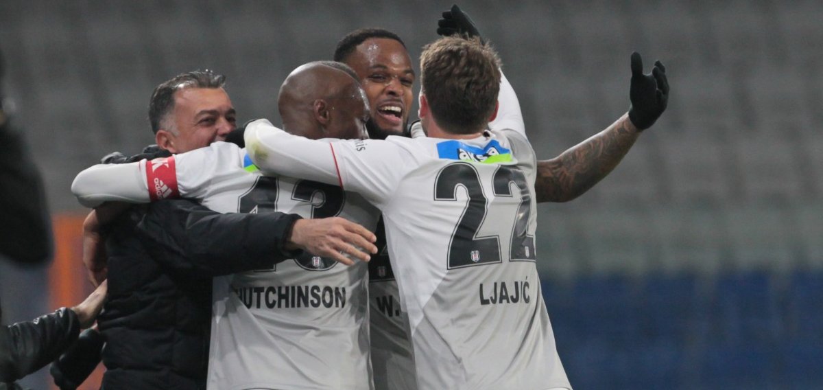 Cyle Larin ve Beşiktaşlu futbolcular golden sonra yedek kulübesindeki yardımcı antrenör Murat Şahin’e koştu. (Foto: Hüseyin Çağlar)
