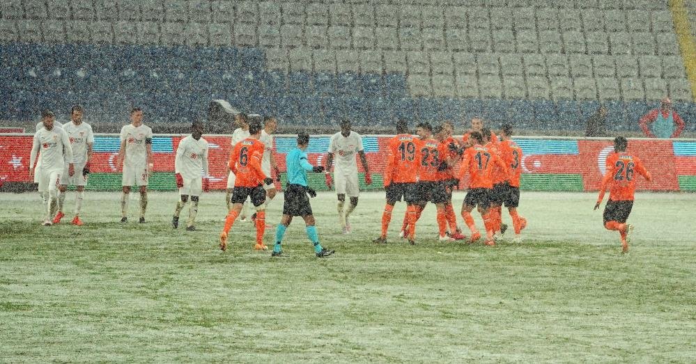 Orta sıralardan Avrupa potasına yakınlaşmak isteyen Başakşehir ile Sivasspor, yoğun kar yağışı altında oynanan karşılaşmadan birer puanla ayrıldı: 1-1. Süper Lig’in 19. haftasında Başakşehir ile Sivasspor karşı karşıya geldi. Başakşehir Fatih Terim Stadyumu’nda yoğun kar yağışı altında oynanan karşılaşmada 1-1’lik beraberlikle sona erdi. Konuk takımın maça beyaz formayla başlayıp, 90 dakikayı da aynı formayla tamamlaması televizyondan mücadeleyi izleyenlere zorluk çıkardı. Beyaz zemin üzerinde oynanan karşılaşmada Sivassporlu oyuncular zaman zaman TV’den seçilemedi. Karşılaşmada Başakşehir’in tek golünü 38. dakikada duran toptan Aleksic kaydederken, Sivasspor’un golü de 42. dakikada Gradel’in asistinde Hakan Arslan’dan geldi. Bu sonucun ardından iki takım da haftayı 23’er puanla tamamladı. Ligin 20. haftasında Başakşehir, Salı günü Kayserispor ile deplasmanda; Sivasspor ise Perşembe günü sahasında Fenerbahçe ile karşılaşacak. İLGİLİ HABER