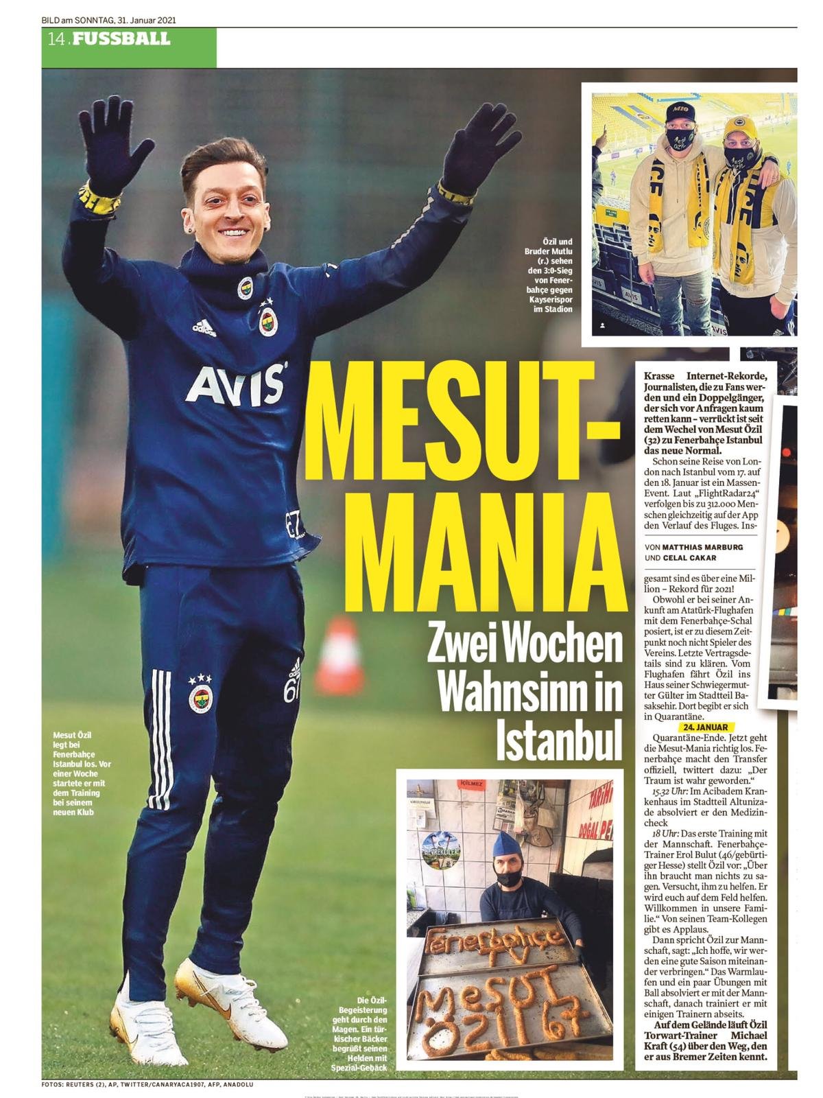 Mesut Özil'in Arsenal'den Fenerbahçe'ye transferinin Almanya'da yankıları devam ediyor. Fenerbahçe, ara transfer döneminde Mesut Özil’i kadrosuna katarak dikkatleri üzerine çekti. Yıldız futbolcunun transferi, sadece Türkiye’de değil Almanya ve İngiltere’de de büyük yankı uyandırdı. Mesut Özil transferi sonrası özellikle Almanya’da Türk futboluna ilgi de tavan yaptı. Almanya’nın ünlü gazetesi Bild, Mesut Özil’i takip etmesi için Türkiye’ye özel muhabir atadı. Matthias Marburg, Mesut Özil’in Fenerbahçe macerasını okuyucularına duyurmakla görevlendirildi. Bild ayrıca, son bir hafta için dört gün, tam beş sayfa Mesut Özil ve Türk futboluna sayfalarında yer verdi. Bu haberleri dizi halinde yayınlayan Bild, 4 Şubat 2021 tarihinde de Türk futbolu ve Mesut Özil’e yer ayıracağı öğrenildi.