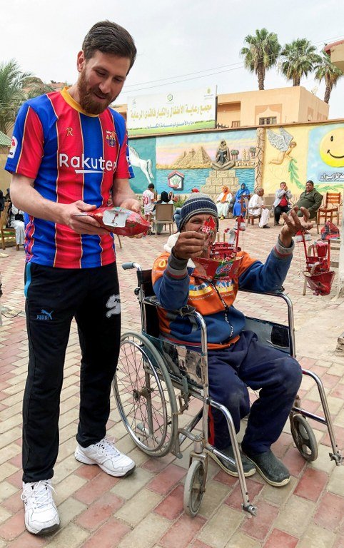 Lionel Messi'ye benzerliğiyle dikkat çeken Mısırlı Islam Battah, ülkesinde çocuklarla bir araya gelerek onlara moral veriyor. Barcelona’nın yıldızı Lionel Messi’ye benzerliğiyle dikkat çeken Mısırlı Islam Battah, ülkesinde gündem oldu.Zagazig şehrindeki bir yetimhaneyi ziyaret ederek çocuklarla vakit geçiren Battah, sakalını uzatınca arkadaşlarının kendisine Messi’ye benzediğini söylediklerini belirtti.“Sakallarım uzayınca Messi’ye benzerliğim daha net oldu” diyen 27 yaşındaki Mısırlı, çocuklara moral verdiği için mutlu olduğunu söyledi.Ülkesinde boya ustası olarak çalışan Islam Battah, “Çocukların, Messi’ye olan benzerliğimden dolayı mutlu olmalarını sağlamak bana da mutluluk veriyor. Birini mutlu ettiğin zaman Tanrı seni ödüllendirir” dedi.