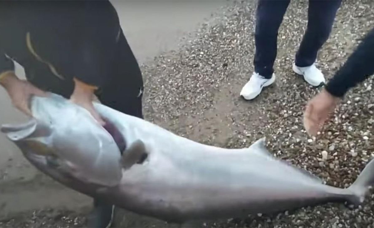Yaklaşık yarım saatlik bir çabanın ardından kıyıya çıkartılan balığı görenler, büyük şaşkınlık yaşadı.