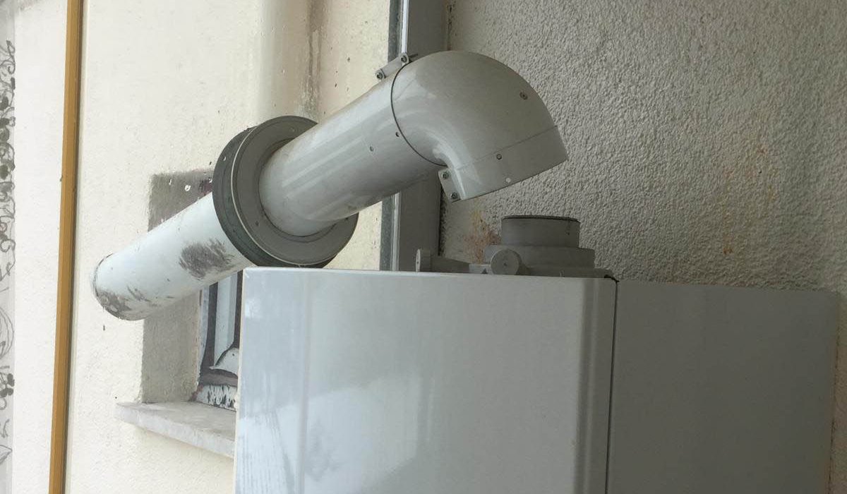 Foto: DHA / Çatıdan düşen buz kombi bacasını yerinden çıkardı.