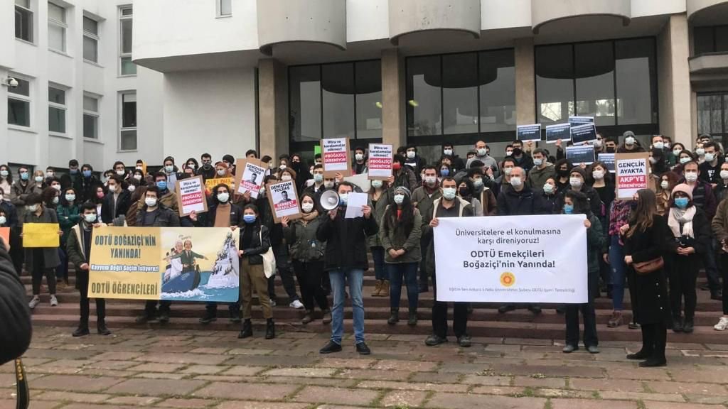 Bahçelievler 7. Cadde girişindeki Eser Park'ta bulaşan öğrenci ve mezunların, etrafı polis tarafından çevrildi. Öğrenciler parktan polis zoruyla çıkarıldı. Girmek isteyenlere de izin verilemedi. Polis ile öğrenciler arasında Anayasa ve üniversite tartışması yaşandı.BİZİM REKTÖRE BENZİYORSUNUZParktaki tartışma sırasına polis amiri öğrencilere, “Siz Türkiye'nin en başarılı öğrencilerisiniz evinize gidin. Zaten pandemi var ” dedi. Daha sonra konuşmasını sertleştiren amir, dağılmazlarsa müdahale edeceğini söyledi. Öğrenciler ise polis amirine, “Okulumuzun yeni rektörüne benziyorsunuz” yanıtını verdi. Daha sonra polis öğrencilere müdahale etti, 3 öğrenciyi gözaltına aldı, eylem sona erdi.