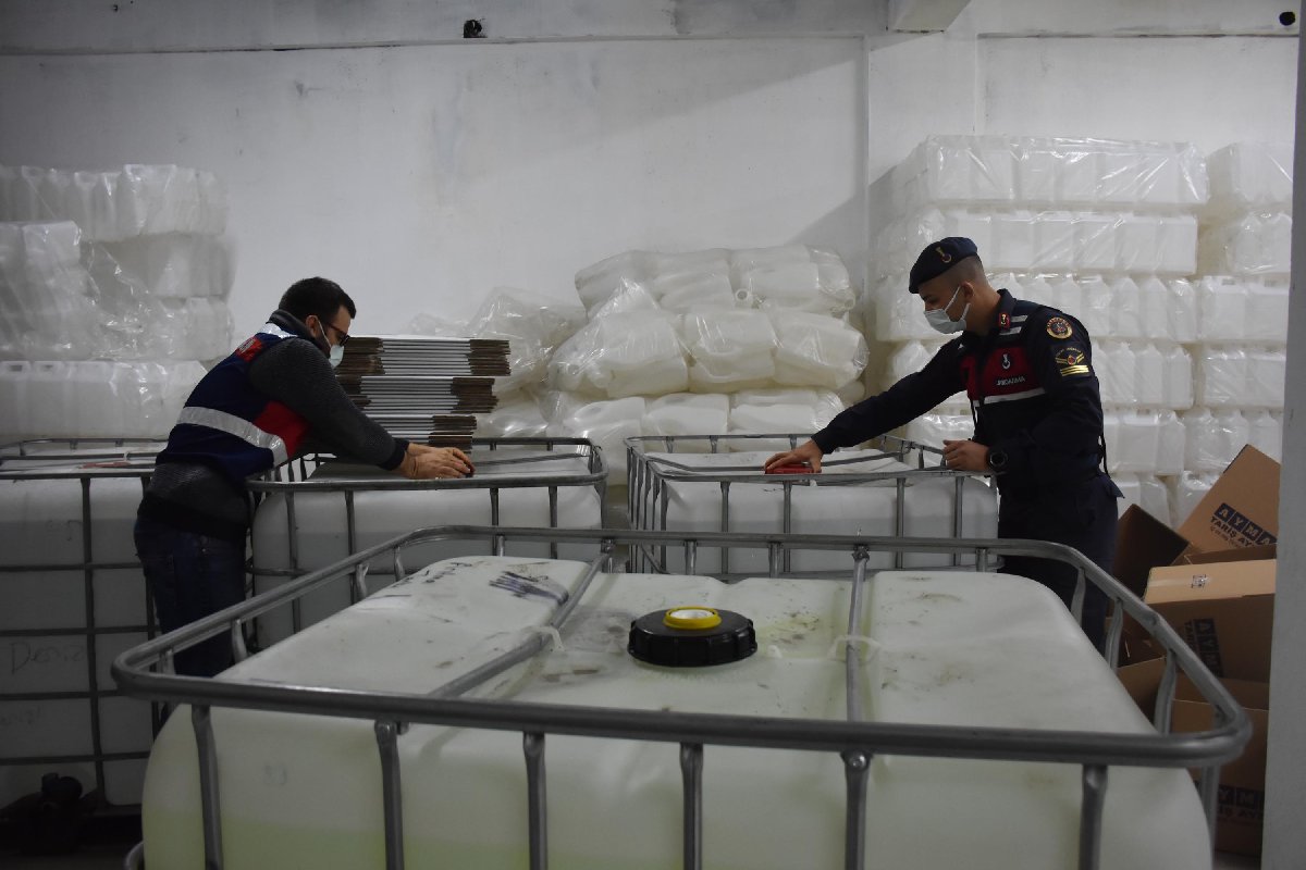Etil alkolün innternetten satışının yasaklanmasının ardından, merdiven altına inen imalathanelere düzenlenen operasyonlar devam ediyor.İzmir'in Bornova ilçesinde kozmetik ürünlerinin bulunduğu bir depoya yapılan operasyonda 7 bin 803 litre etil alkole el konuldu. İzmir İl Jandarma Komutanlığı Kaçakçılık ve Organize Suçlarla Mücadele Şube Müdürlüğü ekipleri, Bornova ilçesi Meriç Mahallesinde bulunan ve kozmetik malzemelerinin bulunduğu bir depoda alkollü içki üretimi ve etil alkol içerisinde bulunan denatonyum benzoat (acı tat veren kimyasal madde) maddesi arıtmak amacıyla tesis kurduğu ihbarını aldı.